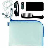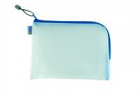 A5 Veske/lomme i plast med blå glidelås 26x20cm