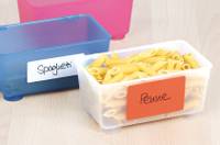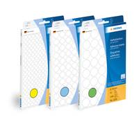 Fargede standard etiketter i mange forskjellige størrelser. Skrives på for hånd. Permanent lim. Leveres i kontorpakning (12x17 cm med eurohull). Ikke egnet til printer.